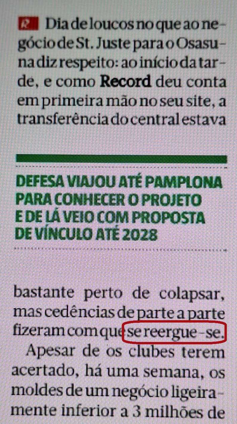 Mas o turbilhão referido no recorte (ao lado) parece perturbar igualmente quem redigiu o texto, ao deixar passar um erro hiperbólico. Com efeito, a sequência «que se reergue-se», cuja forma correta é «que se reerguesse», revela a mais completa confusão entre o pronome se e a terminação verbal sse do imperfeito do conjuntivo. Digamos que se juntam dois equívocos num só erro: