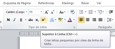 O que obriga a utilizar a função de sobrescrever letras existente nos processadores de texto, como por exemplo o Word, tal como se vê na imagem que a seguir reproduzimos.